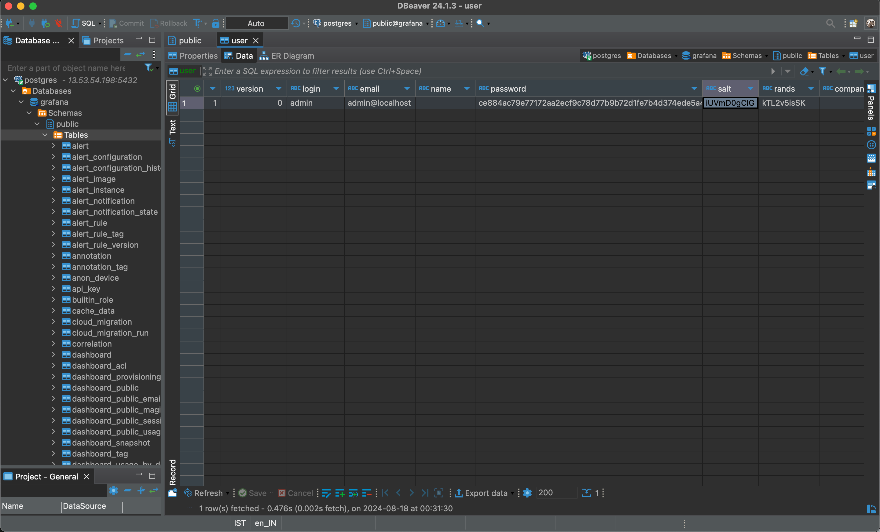 psql -U grafana -d postgres